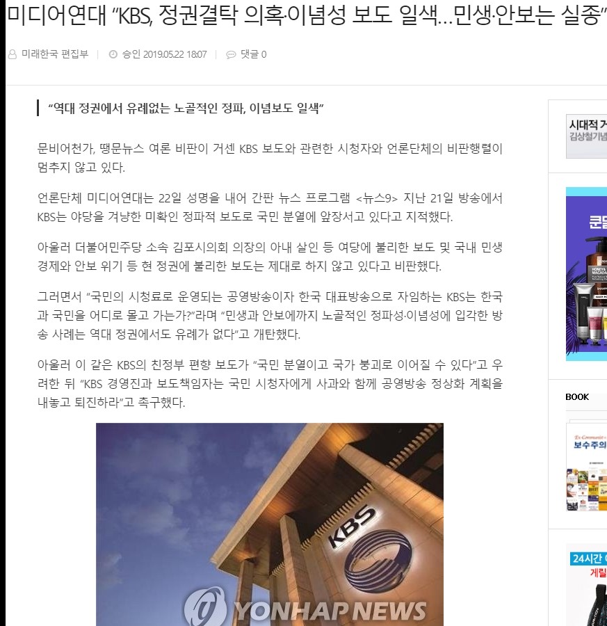지난 4월 강원도 산불 방송의 현장 조작 방송에 이어 5월 17일 취객을 제압했다는 여경의 실제상황을 조작한 방송 논란까지 보면 KBS의 사실조작, 사실왜곡은 전방위적이란 우려를 떨칠 수 없다.